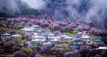 【灼灼桃花足足十里】:波密的[桃花沟]是林芝地区开得盛大、肆意、狂野、密集的。这里的桃花是野生,不似内陆桃花的娇媚,反而透出一股韧劲,蓬勃生命力的展现。桃花多开在公路的两侧,在波堆藏布江河谷内,青稞田的四周,房前屋后都点缀着无数的粉嫩桃花桃花、村庄、雪山、云雾,构成一幅和谐自然画卷。