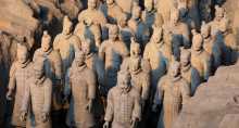 7:30前往【秦始皇兵马俑】(约42km,约1h,游玩3小时),它被誉为“世界第八大奇迹”、“人类古代精神文明的瑰宝”,共有3个兵马俑坑,一号坑是战车和步兵相间的主力军阵,约有6000个真人大小的陶俑;二号坑由战车、骑兵、弩兵混合编组;三号坑是军阵的指挥系统。出土的兵马俑分为将军俑,武士俑,车士俑等。每个陶俑的五官神情各不相同。原本都有彩绘,但因火烧和浸泡,大多已掉色脱落,很值得一看。