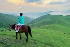 骑着马漫步在辽阔无边际的草原之上